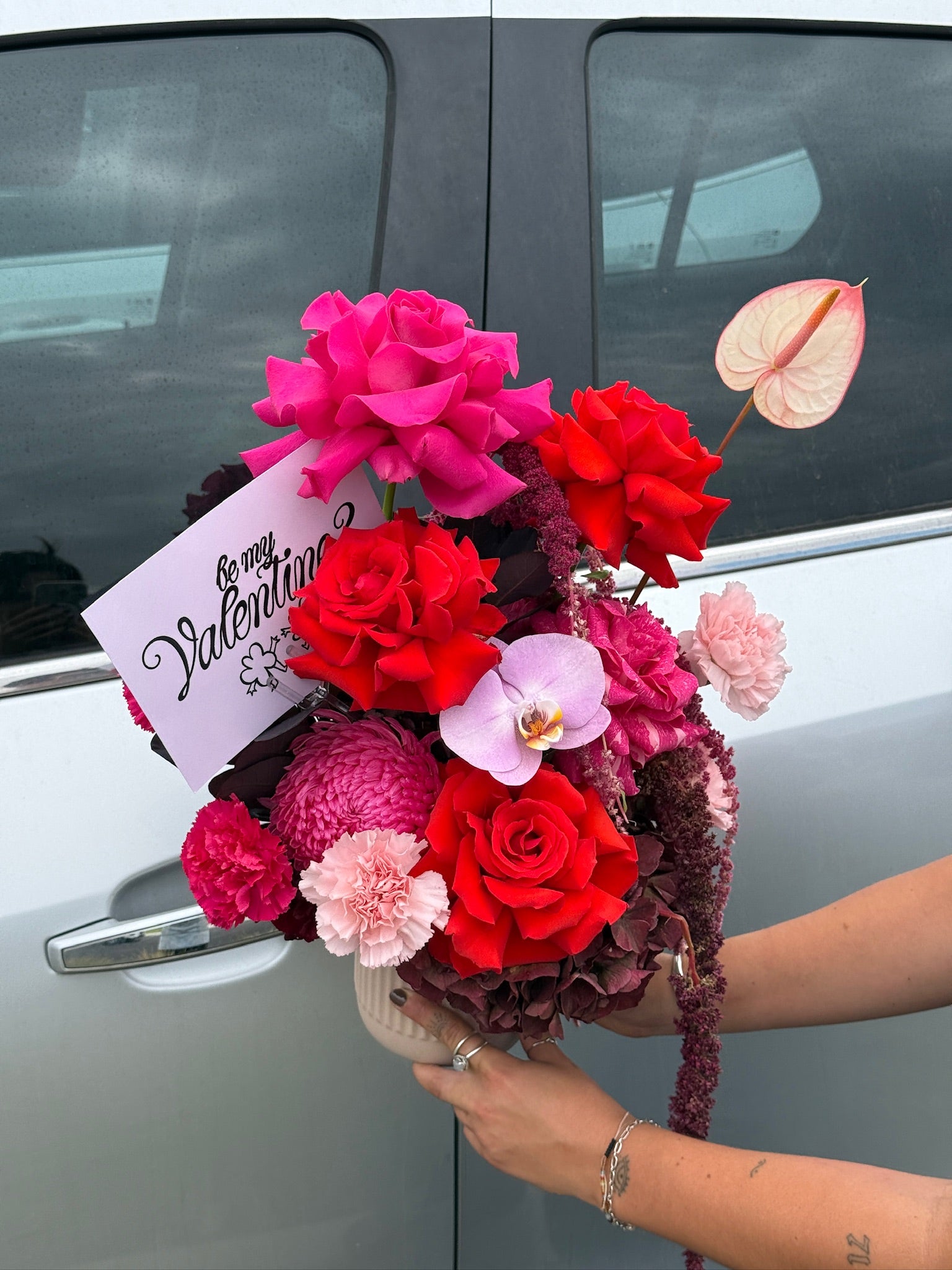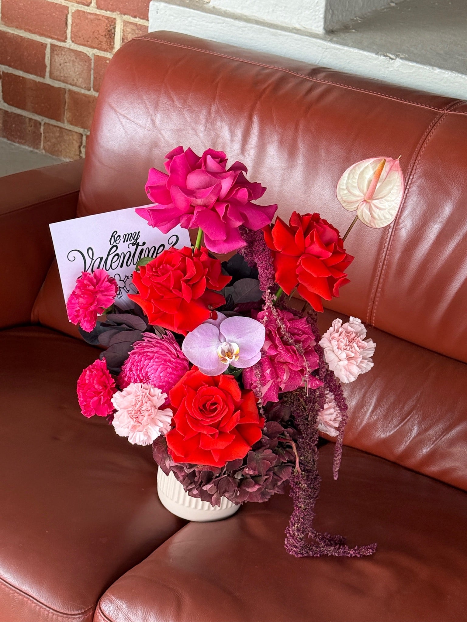 Bold and timeless, our Red Valentine’s Day Bouquet features rich red blooms and lush foliage, a classic symbol of love and passion. Perfect for Valentine’s Day or making a romantic statement.